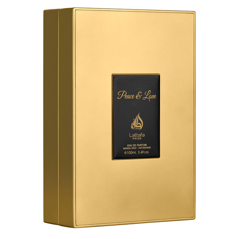 Lattafa Pride Peace & Love is een unisex bloemig-oriëntaalse geur die sereniteit en elegantie belichaamt. De geur opent met frisse bergamot, zoete zwarte bes en zachte amandel, voor een stralende en rustgevende start. In het hart bloeien roos en tuberoos sierlijk en voegen romantische warmte toe. De basis blijft hangen met romig sandelhout, delicate heliotroop en zachte vanille, voor een rustgevende en verfijnde afdronk. Een tijdloze geur voor wie op zoek is naar balans, schoonheid en rust.